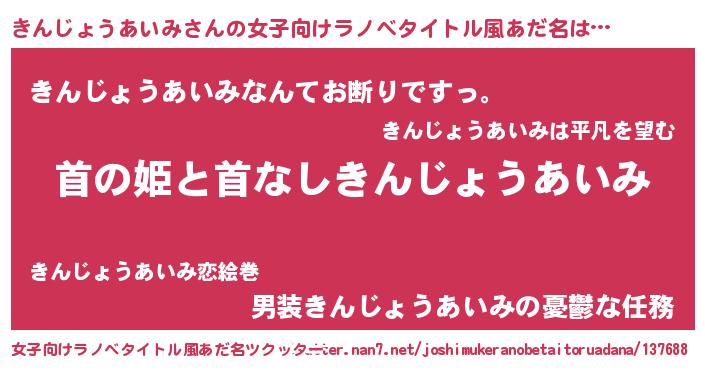 | 意味不明あだ名 | 『自称きんじょうあいみ』 |