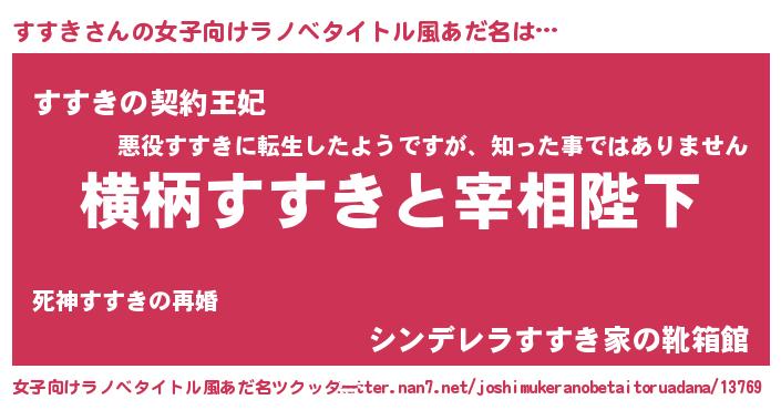 | 男性向けラノベタイトル風あだ名 | 『すすきに滅ぼされるだけの簡単なお仕事です』 |
