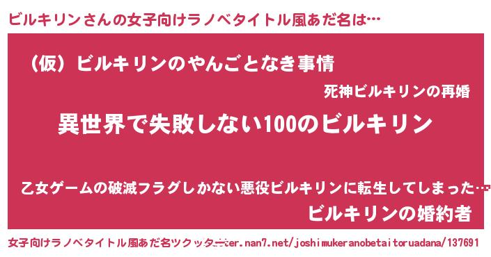 | 男性向けラノベタイトル風あだ名 | 『ビルキリンという概念が存在しない退屈な世界 』 |