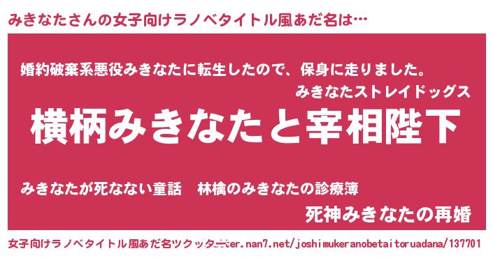 | 伝説のあだ名 | 『救世主となる占い師みきなた』 |