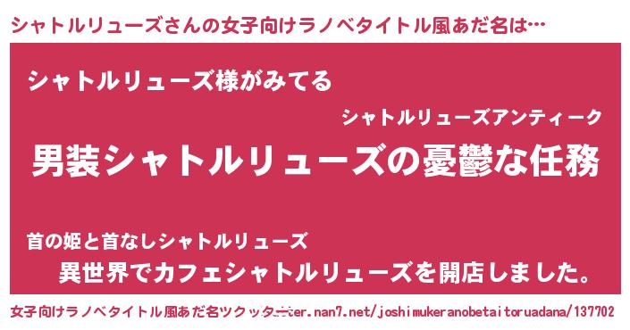 | 胡散臭い通販商品みたいなあだ名 | 『伝統あるネックレス…その名も「シャトルリューズ」』 |