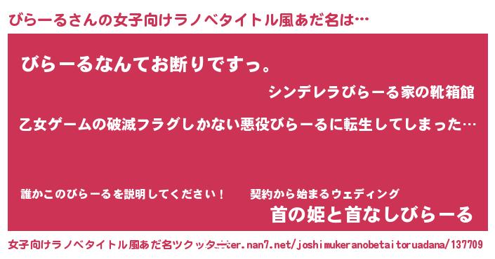 | 男性向けラノベタイトル風あだ名 | 『この素晴らしい世界にびらーるを!』 |