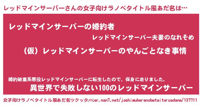 | 男性向けラノベタイトル風あだ名 | 『レッドマインサーバーの憂鬱』 |