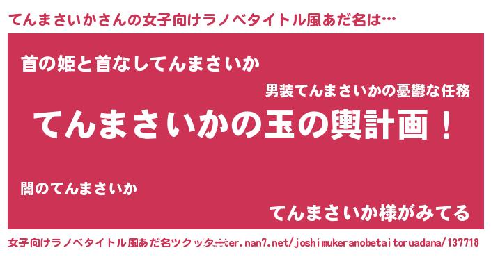 | 男性向けラノベタイトル風あだ名 | 『てんまさいか~年齢イコール彼女いない歴の魔法使い~』 |