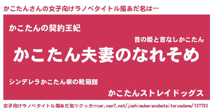 | 男性向けラノベタイトル風あだ名 | 『おまえをオタクにしてやるから、俺をかこたんにしてくれ! 』 |