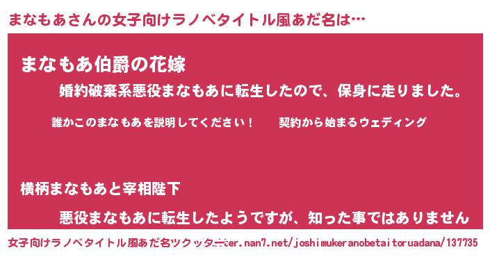 | 胡散臭い通販商品みたいなあだ名 | 『億万長者になれる水晶球…その名も「まなもあ」』 |