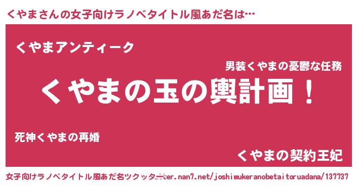 | 意味不明あだ名 | 『もやし科くやま属』『自称くやま』 |