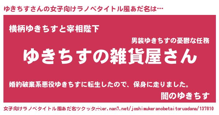 | 男性向けラノベタイトル風あだ名 | 『やはりゆきちすの青春ラブコメはまちがっている 』 |