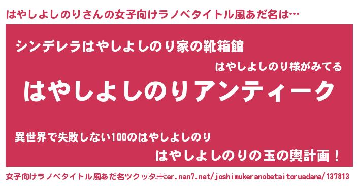 | 男性向けラノベタイトル風あだ名 | 『魔法科高校のはやしよしのり』 |
