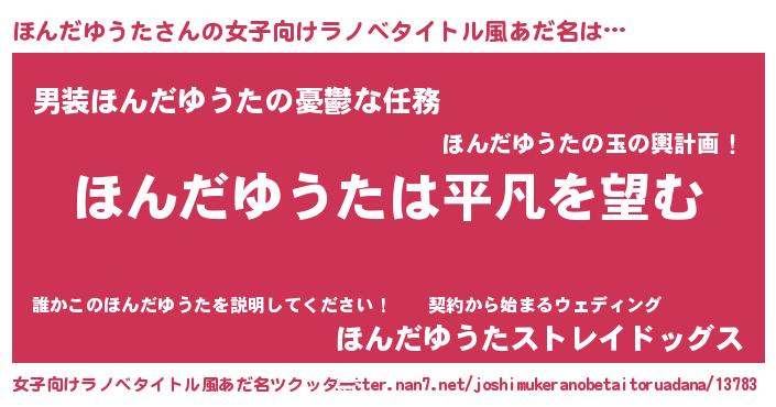 | 男性向けラノベタイトル風あだ名 | 『ダンジョンにほんだゆうたを求めるのは間違っているだろうか』 |