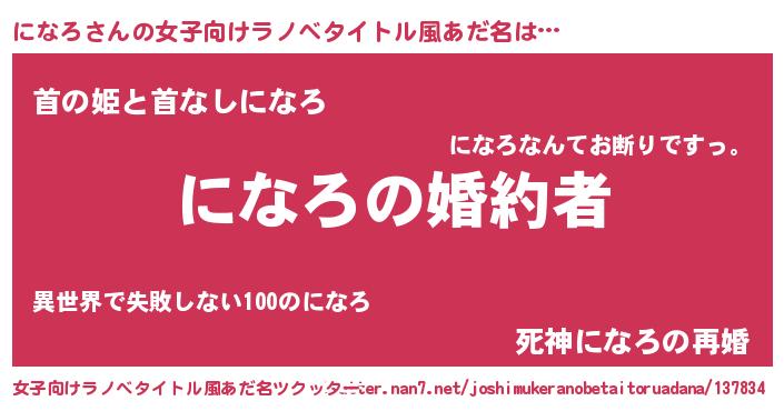 | 意味不明あだ名 | 『になろフォーエバー』『自称になろ』 |