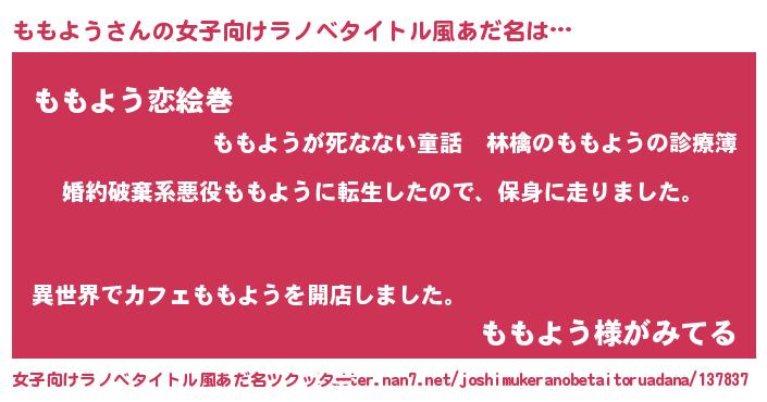 | 男性向けラノベタイトル風あだ名 | 『転生したらももようだった件』 |