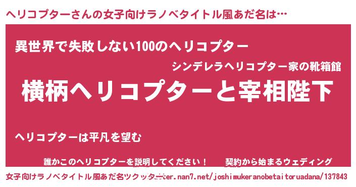 | 男性向けラノベタイトル風あだ名 | 『ヘリコプターに滅ぼされるだけの簡単なお仕事です』 |