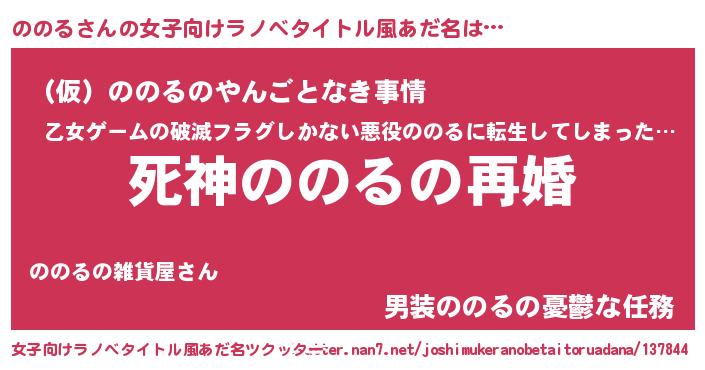 | 男性向けラノベタイトル風あだ名 | 『ノーゲーム・ノーノノル』 |