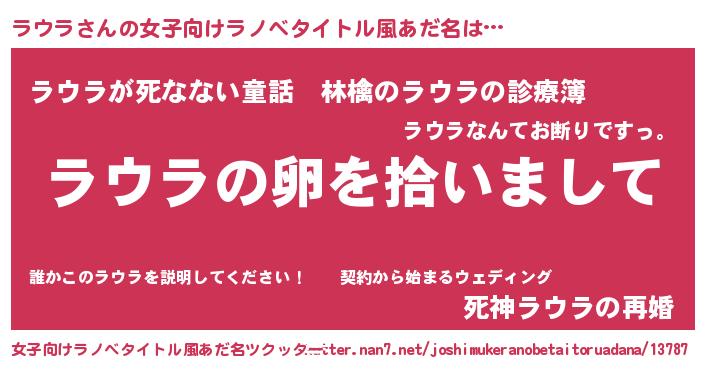 | 胡散臭い通販商品みたいなあだ名 | 『伝統あるサプリメント…その名も「ラウラ」』 |