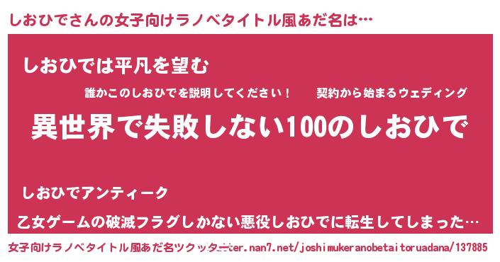 | 男性向けラノベタイトル風あだ名 | 『しおひでという概念が存在しない退屈な世界 』 |