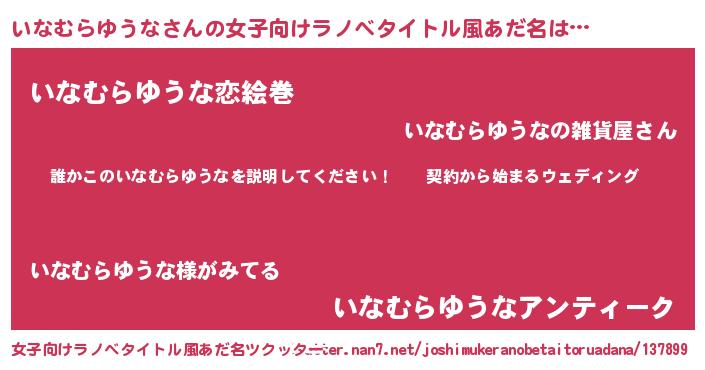 | 胡散臭い通販商品みたいなあだ名 | 『億万長者になれるブレスレット…その名も「いなむらゆうな」』 |