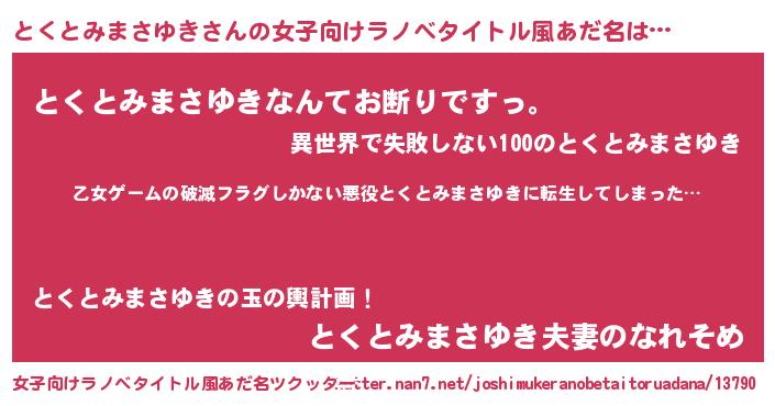 | 意味不明あだ名 | 『住所不定無職とくとみまさゆき(81歳)』 |