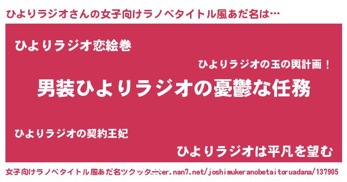 | ヘコむあだ名 | 『ひよを』『ひよりラジオ(苦笑)』 |
