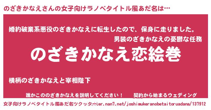 | 男性向けラノベタイトル風あだ名 | 『おまえをオタクにしてやるから、俺をのざきかなえにしてくれ! 』 |