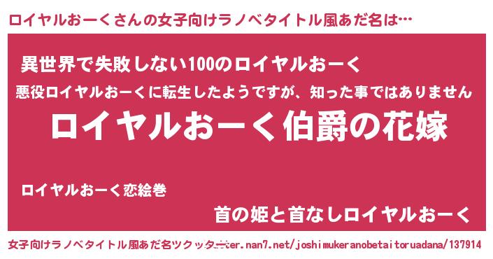 | 意味不明あだ名 | 『ロイヤルおーくフォーエバー』 |