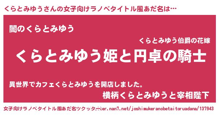 | 肩書あだ名 | 『くらとみゆう御曹司』 |