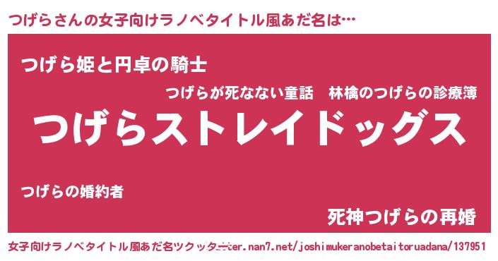 | 意味不明あだ名 | 『自称つげら』『ペロリンつげら』 |