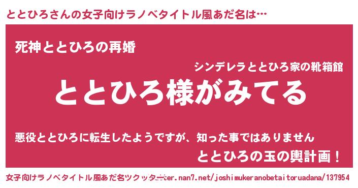 | ヒーロー風カッコイイあだ名 | 『天弓騎士トト』『慈愛の使者ととひろ』 |