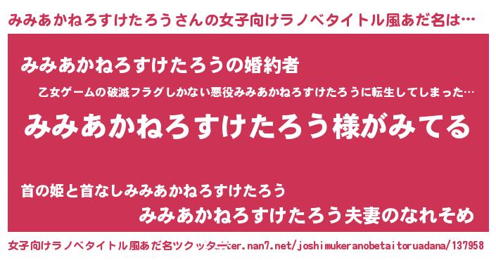 | 意味不明あだ名 | 『とにかく怪しいみみあかねろすけたろう』 |