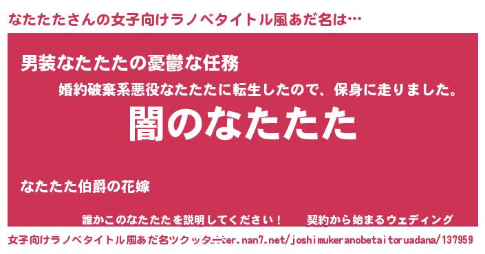 | 男性向けラノベタイトル風あだ名 | 『Re:なたたたから始める異世界生活』 |