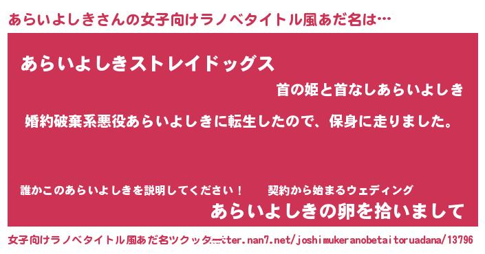 | ヘコむあだ名 | 『あらを』『あらにー』『なまこ酢』 |