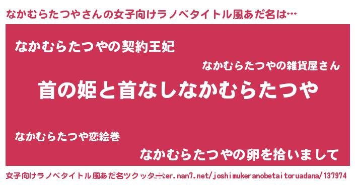 | 男性向けラノベタイトル風あだ名 | 『はたらくなかむらたつやさま!』 |