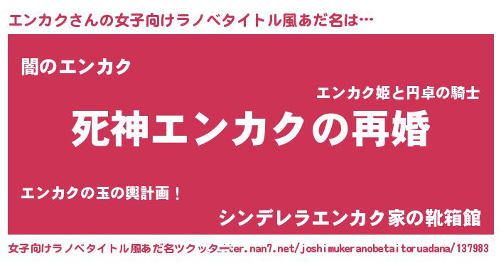 | 男性向けラノベタイトル風あだ名 | 『ノーゲーム・ノーエンカク』 |