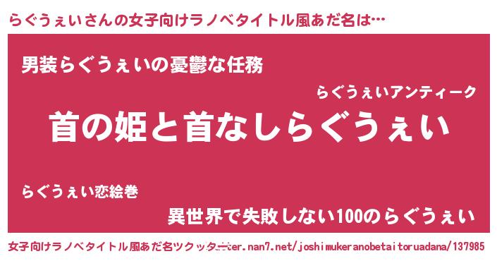 | 胡散臭い通販商品みたいなあだ名 | 『絶対に幸福をもたらす招き猫…その名も「らぐうぇい」』 |