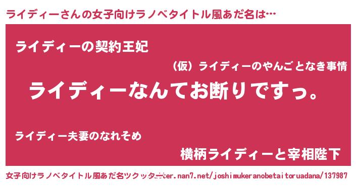 | 可愛いあだ名 | 『ライうちぇる』『ライディーママ』 |