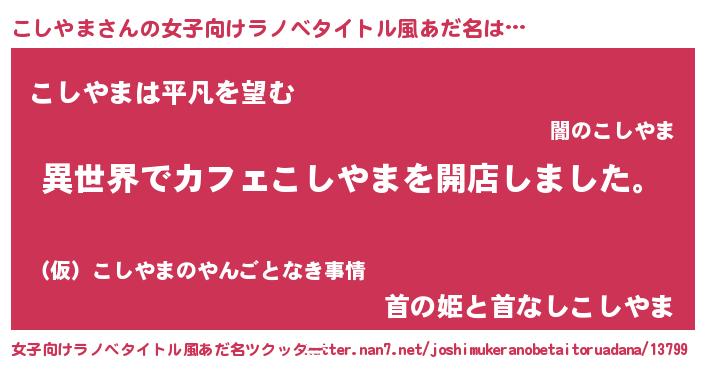 | 男性向けラノベタイトル風あだ名 | 『誰もが恐れるあのこしやまが、ぼくの専属メイドになるようです。』 |