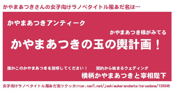 | 男性向けラノベタイトル風あだ名 | 『転生したらかやまあつきだった件』 |