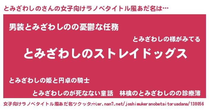 | 男性向けラノベタイトル風あだ名 | 『Re:とみざわしのから始める異世界生活』 |