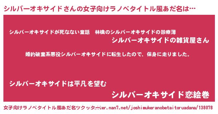 | 男性向けラノベタイトル風あだ名 | 『シルバーオキサイドスレイヤー』 |