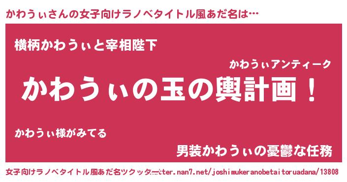 | ヒーロー風カッコイイあだ名 | 『究極戦士カワウィ』『幻影騎士カワ』 |