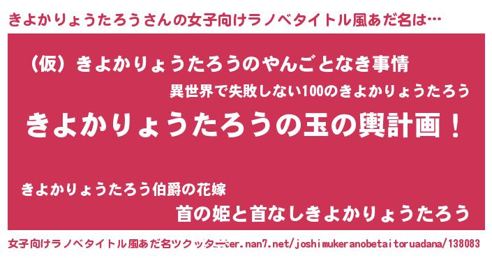 | 男性向けラノベタイトル風あだ名 | 『転生したらきよかりょうたろうだった件』 |