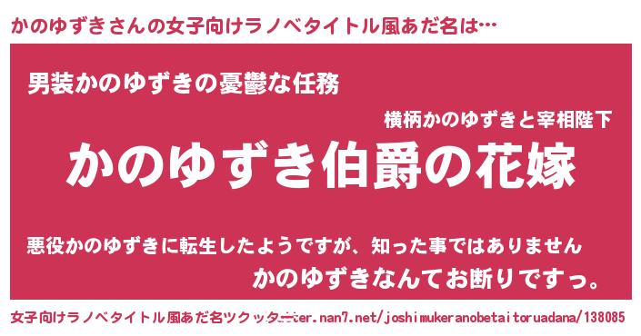 | 男性向けラノベタイトル風あだ名 | 『やはりかのゆずきの青春ラブコメはまちがっている 』 |