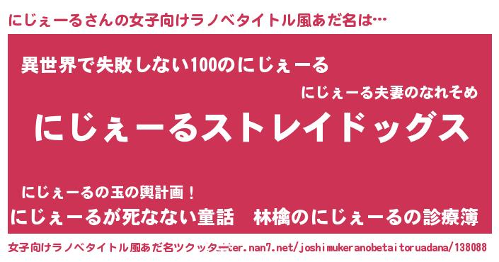 | 意味不明あだ名 | 『自称にじぇーる』『永久保存にじぇーる』 |