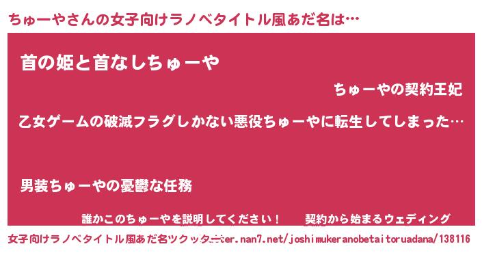 | ヘコむあだ名 | 『ちゅふぇ~』『ちゅーや(遠い目)』 |