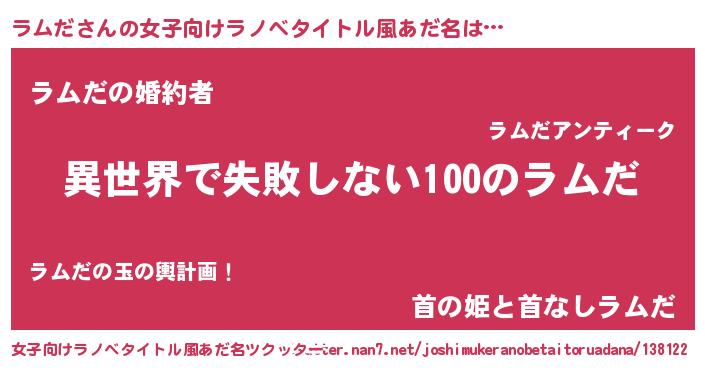 | 男性向けラノベタイトル風あだ名 | 『ラムだという概念が存在しない退屈な世界 』 |