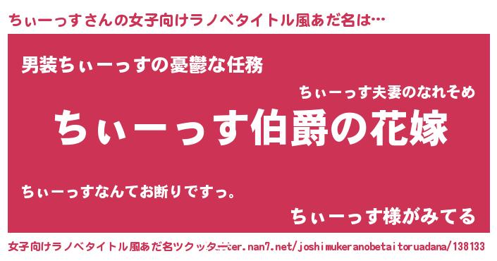 | ファンタジー風あだ名 | 『エターナルチィーッスー』『ゼチィトゥ』 |