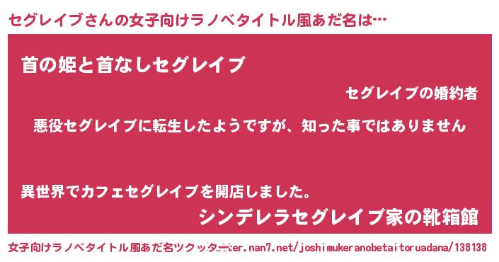 | 男性向けラノベタイトル風あだ名 | 『この素晴らしい世界にセグレイブを!』 |
