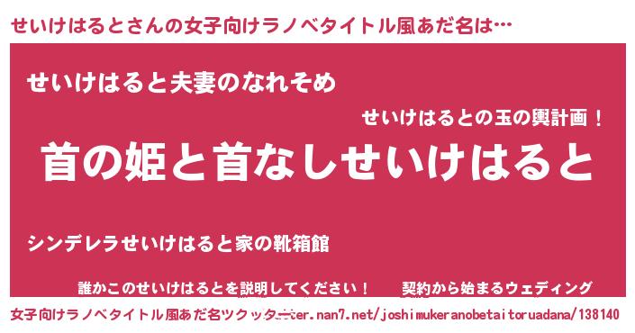 | 男性向けラノベタイトル風あだ名 | 『はたらくせいけはるとさま!』 |