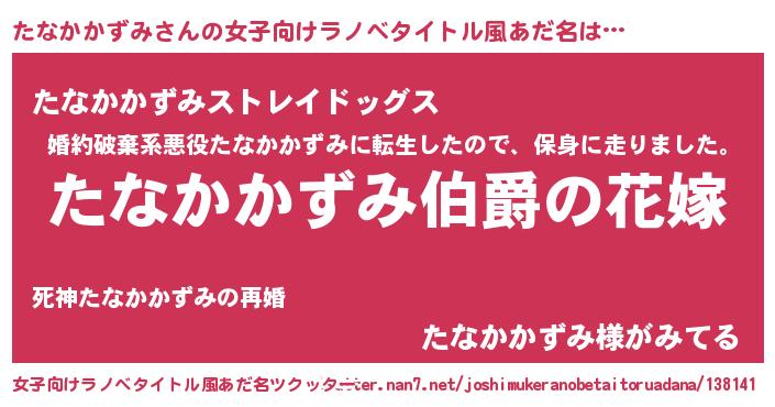 | 男性向けラノベタイトル風あだ名 | 『やはりたなかかずみの青春ラブコメはまちがっている 』 |