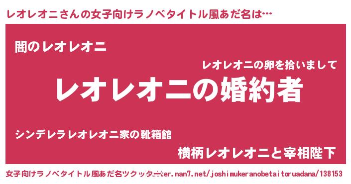 | ファンタジー風あだ名 | 『エターナルレオレオニー』『ゼレオトゥ』 |